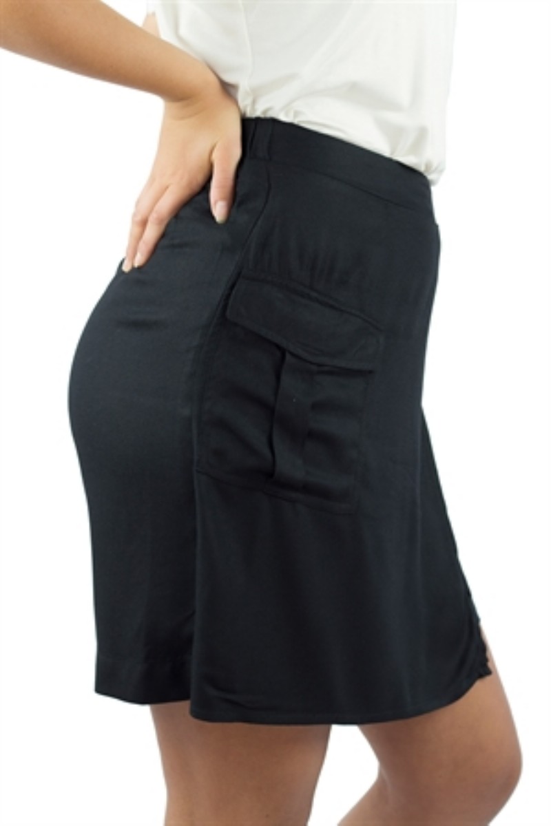 Skorts - shorts men ser ut som en kjol fram. Utanpåficka på höger sida, dekorfickor bak. Resår i linning bak, slät framtill.