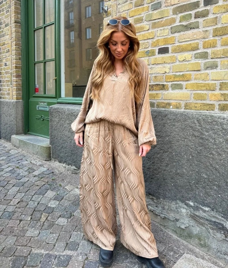 Supersnygg satinbyxa i mönstrad viskos-silke