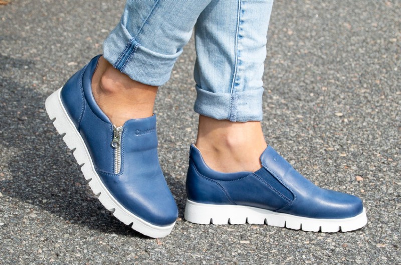 Snygg blå skinnloafer med bra svikt